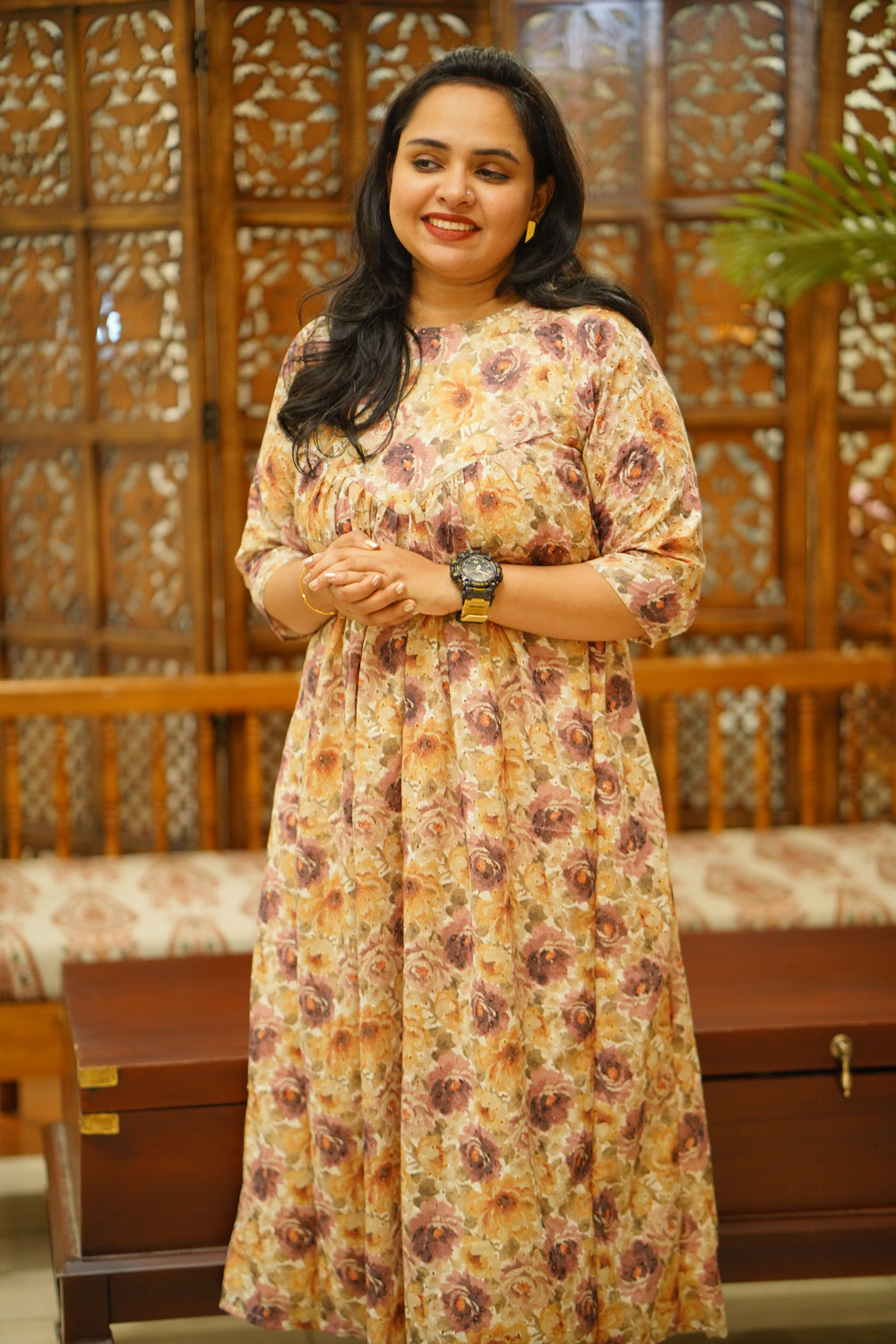 gorgeous floral printed hakoba kurti! ⨠The muted, earthy tonesāfrom warm rusts and ochres to deep maroonsācreate a beautiful, sophisticated palette thatās perfect for any season.